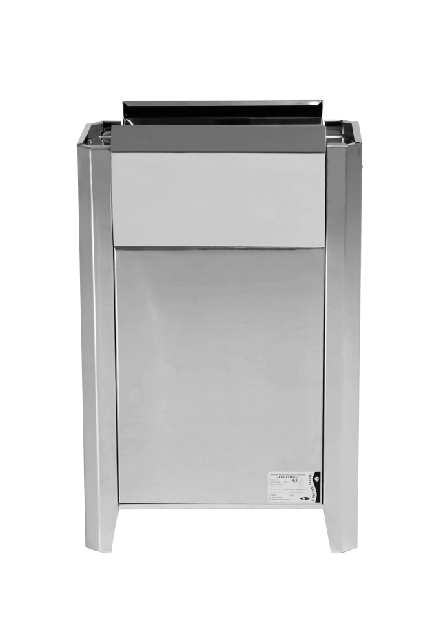 Печь постоянно модернизируется и совершенствуется. Корпус ее изготовлен из нержавеющей стали, а сам нагреватель выполненный в виде рамок, с высокоомной стальной лентой. Температура ленты не превышает 500* С, что гарантирует ее долговечность и кроме того она не «сжигает» кислород, при этом за счет большой теплообменной поверхности обеспечивает быстрый нагрев парного помещения. Управляется печь с выносного пульта.