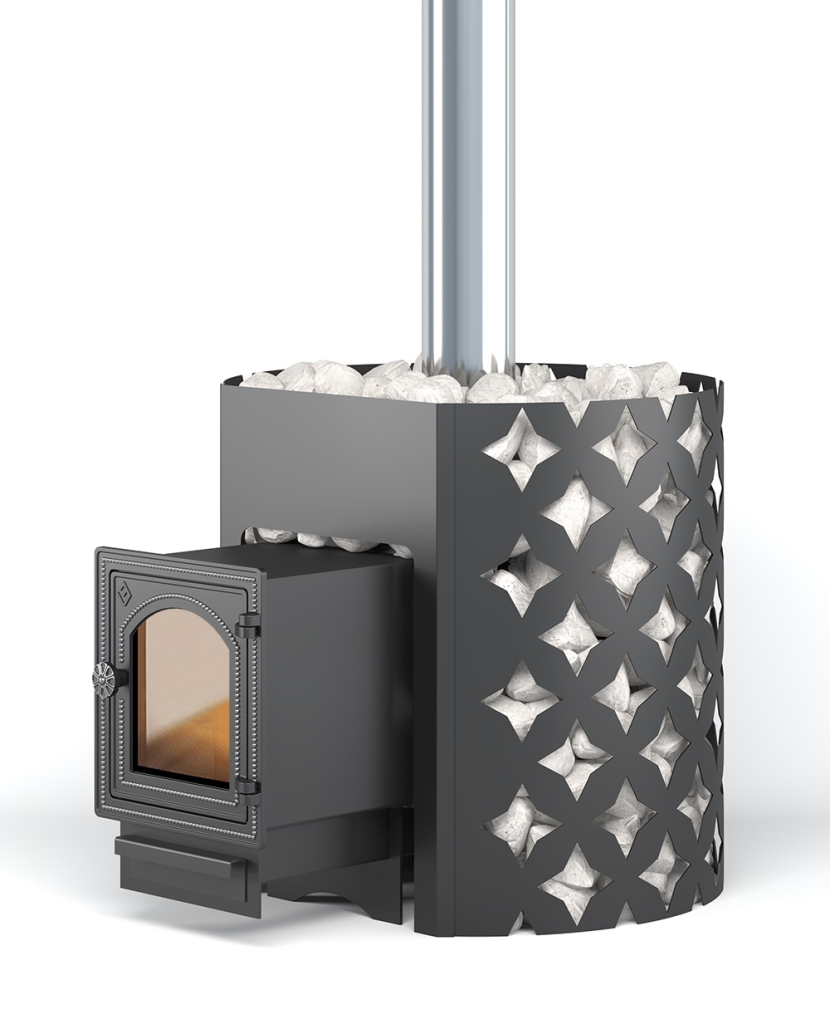 Кожух для открытой каменки диаметром 620 миллиметров вмещает в себя до 140 килограммов камней крупной и средней фракции.