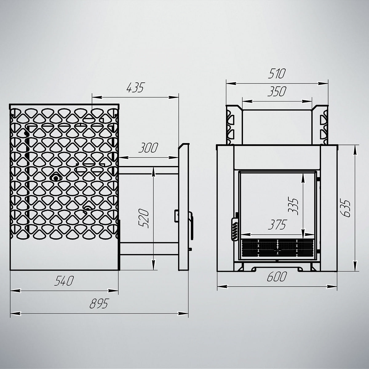 Одной из примечательных особенностей этой печи является возможность установки бака с водой на правую или левую боковую стену, что предоставляет гибкость в планировке. Большое обзорное стекло топки не только позволяет контролировать процесс горения, но и создает атмосферу уюта, позволяя наслаждаться магией огня.