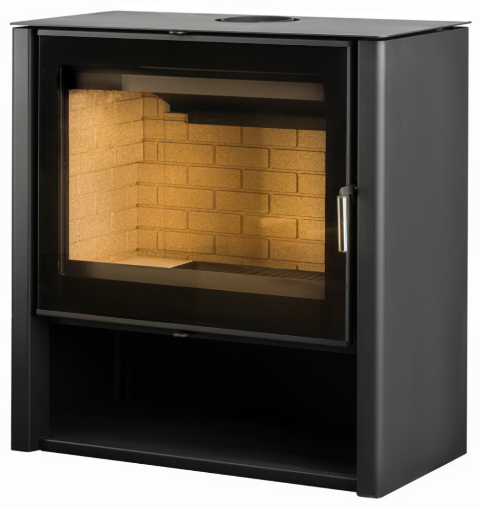 Пристенная печь с оригинальным и лаконичным дизайном. Большая плоская топочная дверка. Идеально подходит для обогрева помещения, выполненного в современной стилистике площадью 45-90 м2. Размер поленьев 30 – 60 см.