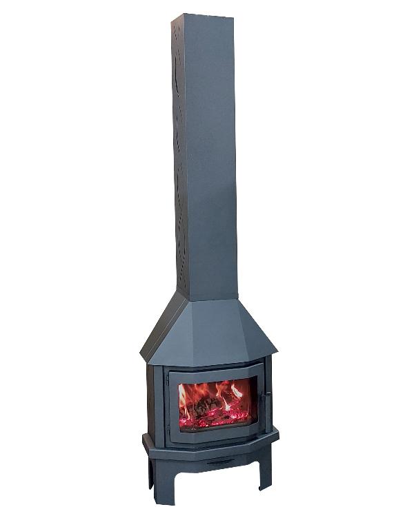 Печь-камин Мюнхен - недорогой готовый вариант углового камина из металла в стиле хай-тек.