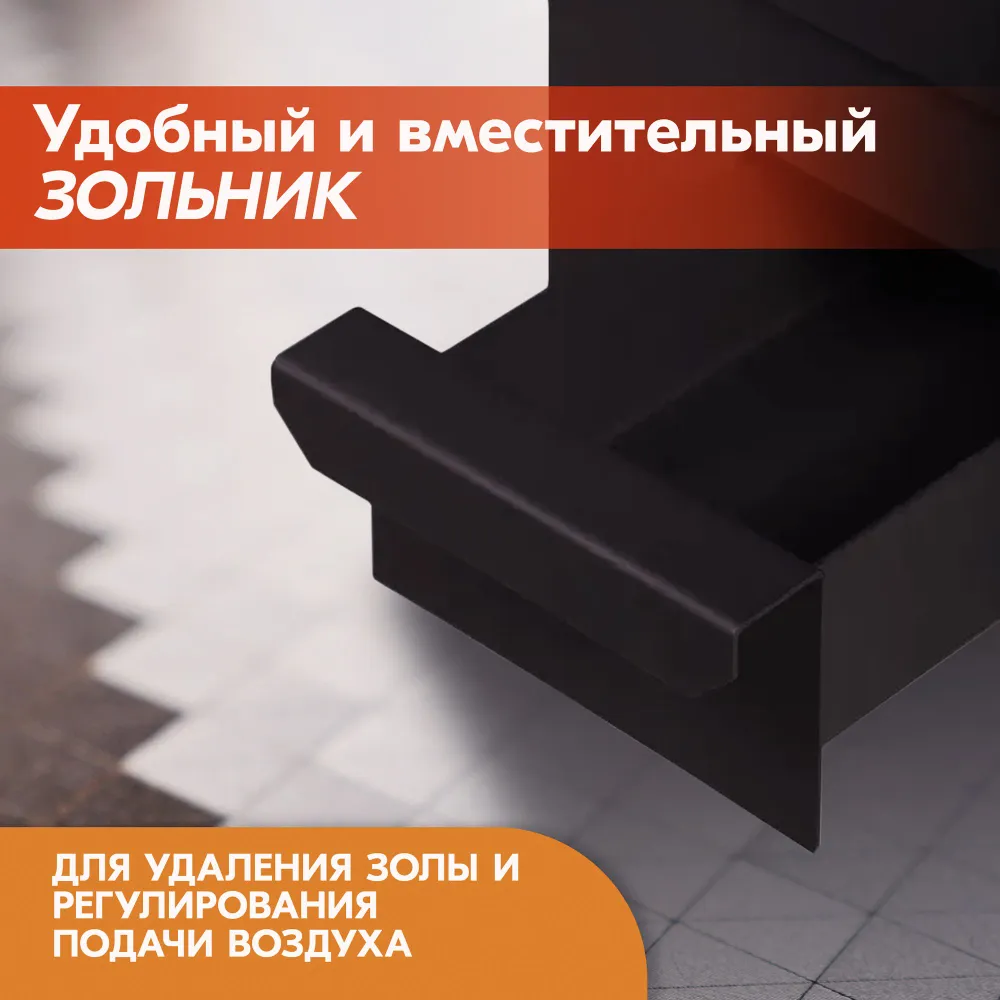 Под дверкой топки расположен зольный ящик, выполняющий две функции: удаление золы и регулирование подачи воздуха (поддувало).