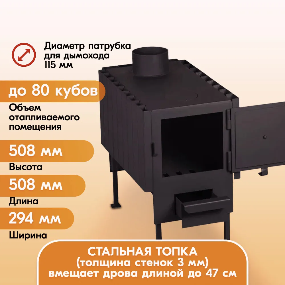 Печь Буржуйка PECHITEPLOV 80Б: