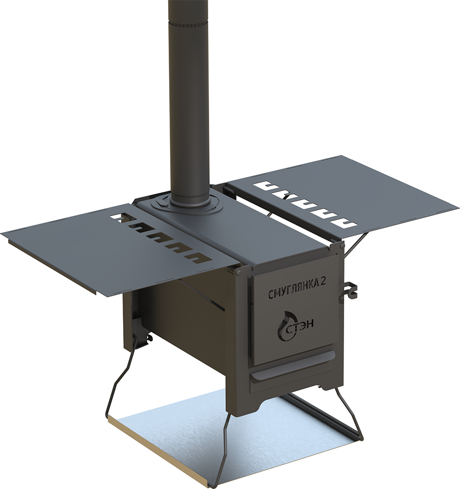 Печи комплектуются разборным дымоходом. На печах «СМУГЛЯНКА» можно готовить и разогревать пищу. Печи комплектуются каменкой (разборным металлическим коробом) для обустройства бани в походных условиях.