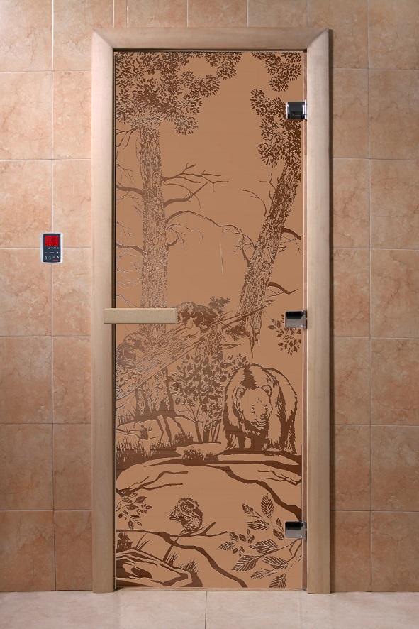 Дверь для сауны "Мишки в лесу" (матовая) 190х70 в Калуге | Доставка по России