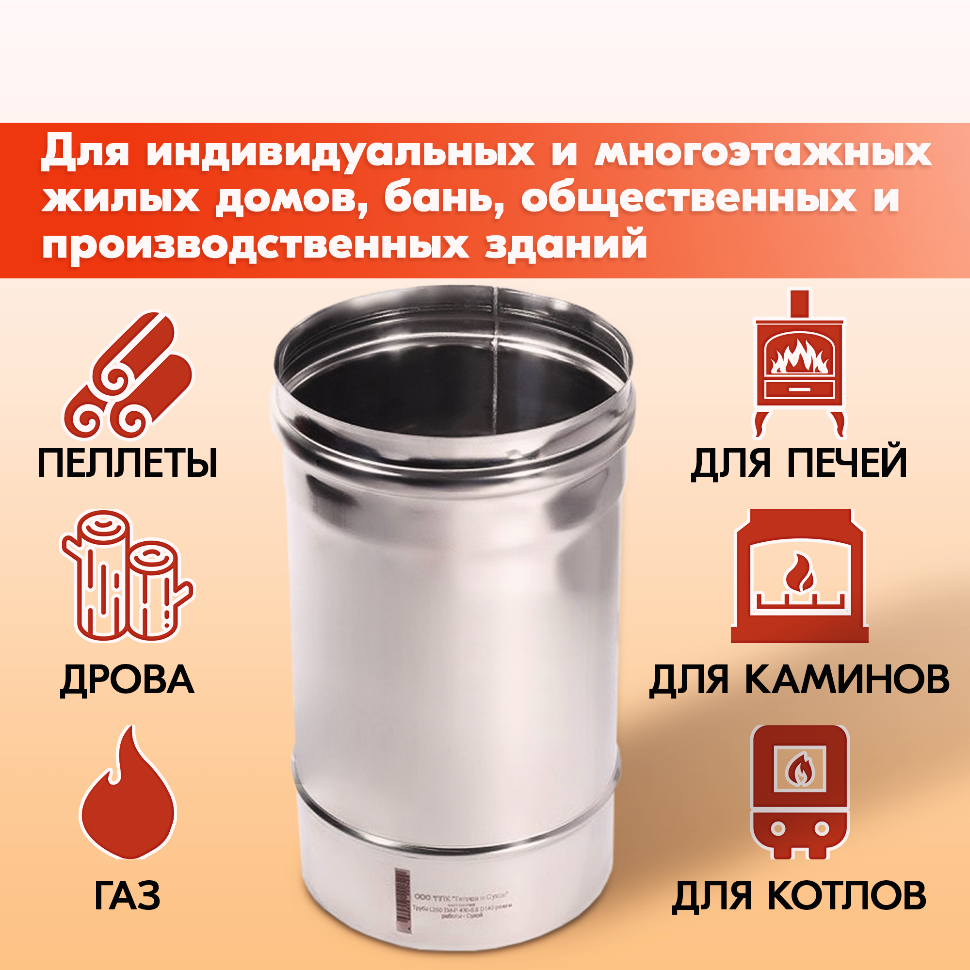 Дымоходные трубы Моно подходят для установки на печное оборудование отапливаемое газом, дровами или пеллетами.