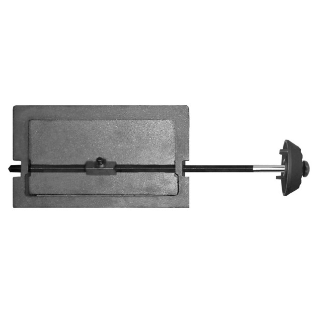 Задвижка позволяет регулировать тягу в дымоходе, обеспечивая выход дымовых газов в атмосферу. После прогорания дров в топочной камере и прекращения горения задвижка закрывается, тем самым предотвращая выход теплого воздуха в трубу.