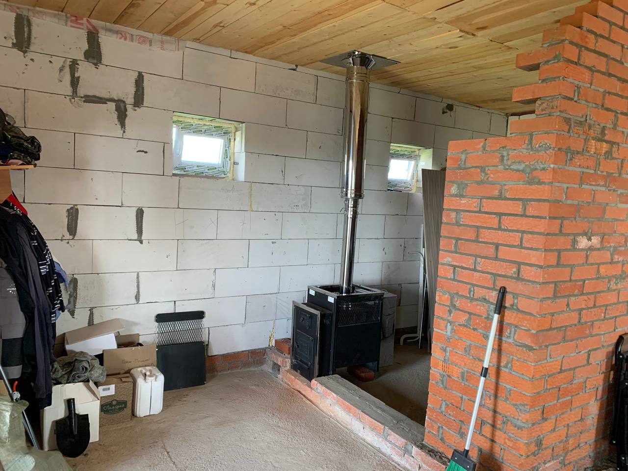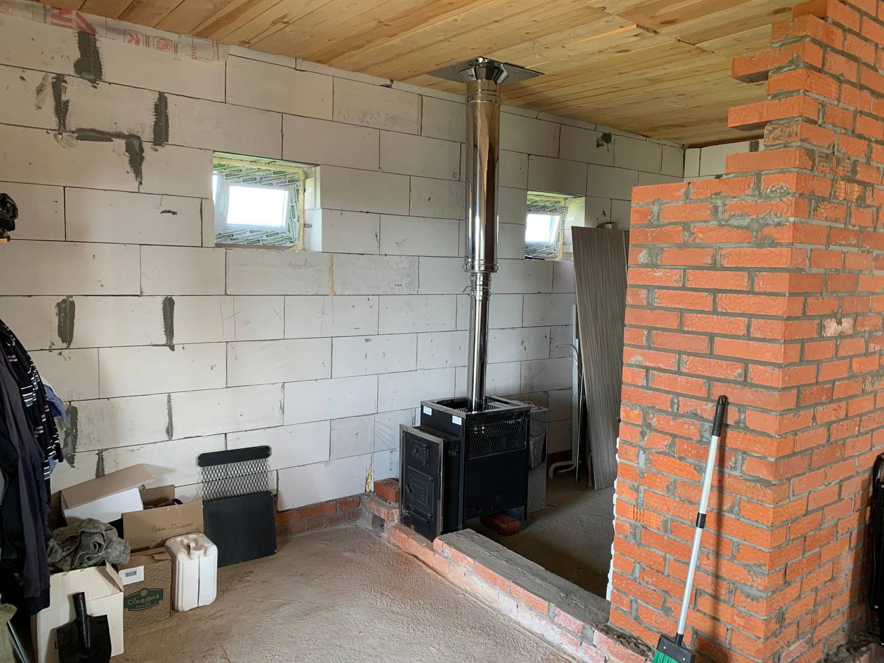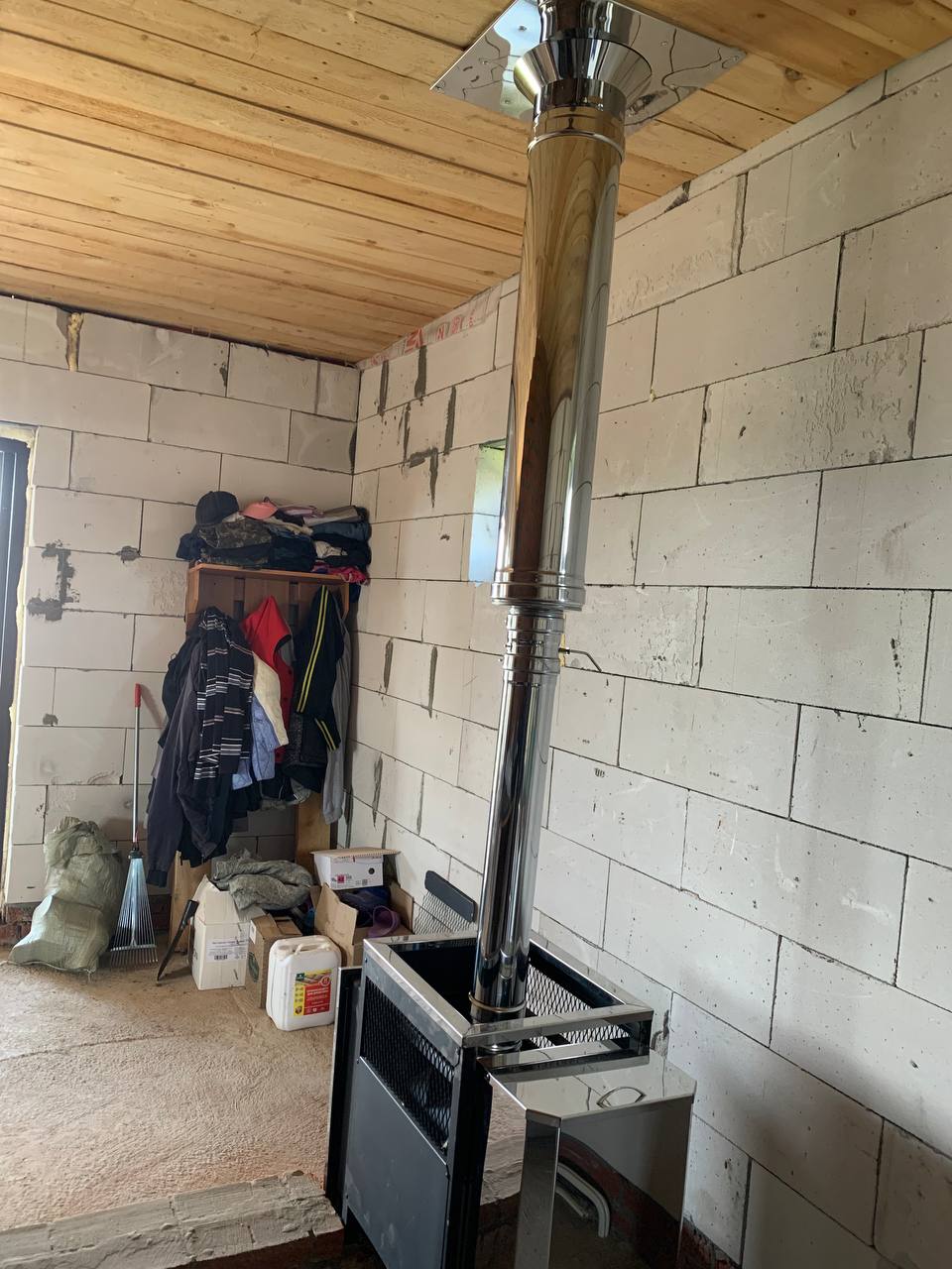 Монтаж банной печи  Радуга ПБ-21Б с установкой дымохода Тис